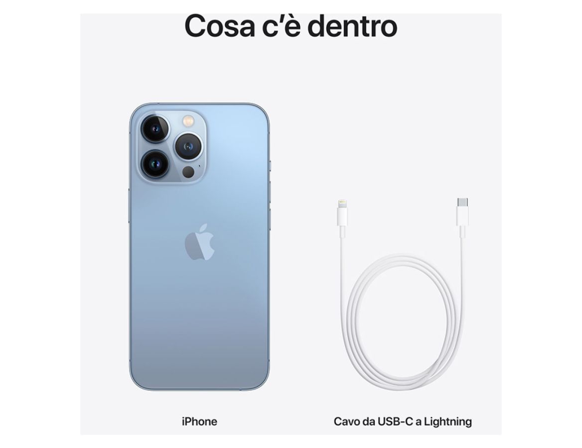 iPhone con iOS 15, cavo da USB-C a Lightning, documentazione |
